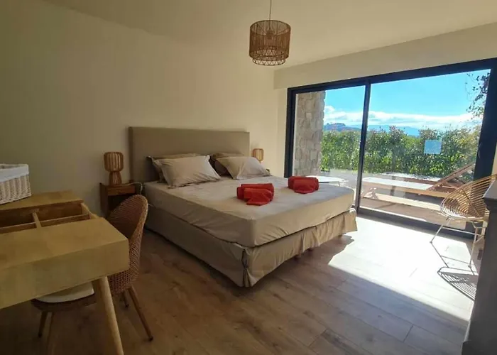 Die 2-Zimmer-Proche Porticcio, Coup De Coeur Asure,Appartement De Standing, Rez De Villa 6 Couchages, Climatise A 150M De La Plage, Terrains De Tennis Grosseto-Prugna empfängt die Gäste am Strand von Grosseto-Prugna, rund 6 km vom Place Foch entfernt. Genießen Sie Ihren Aufenthalt auf einer Terrasse, von der aus Sie einen Küsten- Blick aufs Meer haben.